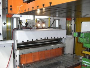 Per facilitare e rendere sicuro e rapido il taglio del nastro la Balconi costruisce e fornisce cesoie idrauliche posizionate tra i montanti della pressa all’entrata del nastro. Questo consente di tagliare il nastro che è rimasto nello stampo in sicurezza senza che l’operatore debba intervenire manualmente.